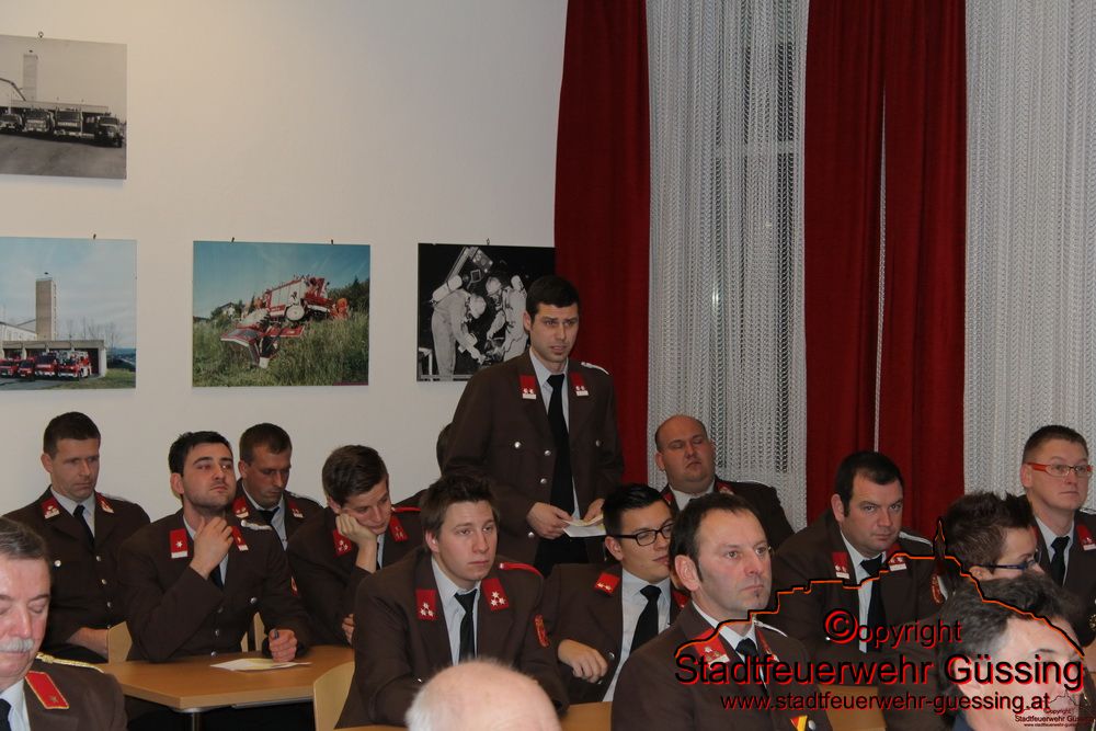 Am 6.1.2014 durfte unser Stadtfeuerwehrkommandant ABI Thomas Jandrasits im Rahmen der diesjährigen Jahreshauptdienstbesprechung zahlreiche Feuerwehrkameraden und Ehrengäste bei uns im Feuerwehrhaus Güssing begrüßen. Im Rahmen der Besprechung wurden einige dienstliche Veränderungen bzgl. Personalpolitik und geplanten Tätigkeiten verkündet.
