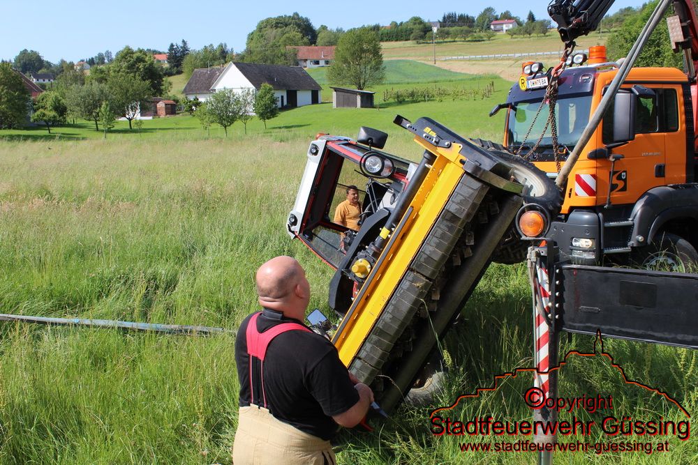 Am Freitag, dem 09.05.2014, wurden wir um ca. 12:00 Uhr zu einer Traktorbergung in die Punitzerstraße gerufen. Der Traktor war im weichen Untergrund versunken und steckengeblieben. Die Bergung erfolgte mittels Seilwinde unseres SRFs.
