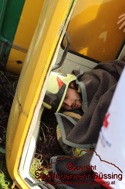 Am Samstag, dem 29.03.2014, trafen sich ca. 30 Mitglieder der Stadtfeuerwehr Güssing zur angesetzten, zwölf Stunden andauernden, Übung. Beginn war um 10:00 Uhr. Es wurden den ganzen Tag über mehrere Szenarien angenommen und beübt. Die erste Übungsannahme war ein Brand auf der Hochburg in Güssing. Es musste die Wasserversorgung vom Hydranten bei der Burgauffahrt bis auf den Turm der Burg Güssing hergestellt werden. Des weiteren wurde eine Wasserentnahme aus dem unter der Burg befindlichen Wasserreservoir geübt. Nach dem gemeinsamem Mittagessen im Burgrestaurant stand ein Verkehrsunfall mit mehreren eingeklemmten Personen auf dem Programm. Übungsannahme war ein Zusammenstoß eines Klein-LKWs mit einem PKW auf einer Brücke, wobei der Klein-LKW auf einer Leitschiene zum stehen kam. Der PKW war auf dem Dach gelandet und drohte einen Abgrund hinunterzustürzen. Im Anschluss daran wurde durch eine Gruppe ein Fahrertraining abgehalten und die andere Gruppe wurde in die Funktion einer Sprinkleranlage bei der Fa. Parador eingewiesen. Danach folgte ein Brandeinsatz im Alten- und Pflegeheim in Güssing. Dabei wurde ein Brand in einer Station, in welcher sich noch drei Personen aufhielten simuliert. Diese Personen mussten mit schweren Atemschutz gesucht und gerettet werden. Gleichzeitig wurde mittels der Drehleiter eine Personenbergung aus dem dritten Stock durchgeführt. In weiterer Folge war noch ein Brand in der Lüftungszentrale ausgebrochen, welchen es zu Löschen galt. Nach einer kurzen Stärkung im Altenwohnheim stand eine Schulung im Feuerwehrhaus auf dem Programm. Das Thema war Kartenkunde. Dabei wurden die Kameraden auf das neue Kartensystem UTM geschult. Die letzte Übung des Tages wurde bei der Fa. BAG (Ölmühle) durchgeführt. Übungsannahme war eine Explosion, bei welcher in einem Teil des Gebäudes ein Brand ausgebrochen war und eine Person vermisst und am Technikturm eine Person durch ein Stahlrohr eingeklemmt wurde. Der Brand wurde unter schwerem Atemschutz bekämpft. Die eingeklemmte Person lag in einem explosionsgefährdeten Bereich und musste mit dem hydraulischen Rettungssatz mit der Handpumpe befreit werden. Die anschließende Bergung erfolgte mit der Drehleiter. Nach dem gemeinsamen Abendessen im Feuerwehrhaus wurde die Einsatzbereitschaft wieder hergestellt. Alle Übungen wurden von den Übungsorganisatoren beobachtet und dann gemeinsam analysiert. Um ca. 22:00 Uhr endete der lange und anstrengende Übungstag. Wir möchten uns bei allen betroffenen Unternehmen für die Zurverfügungstellung der Räumlichkeiten und die Unterstützung bedanken.