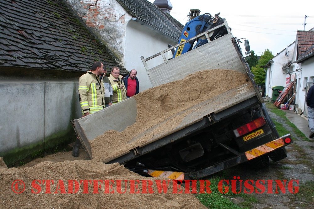 Am 17.09.2010 wurden wir gegen 13:30 Uhr zu einem technischen Einsatz nach Gaas gerufen. Nach der Alarmierung setzten sich 12 Mann der Stadtfeuerwehr Güssing mit KDO, SRF und ULF in Bewegung. Ein LKW war in eine alte Jauchegrube eingebrochen. Vorangegangene Bergungsversuche mit einem Traktor waren gescheitert. Dann wurde die Stadtfeuerwehr Güssing zu Hilfe gerufen. Die schwierige Bergung des LKWs dauerte ca. 2 Stunden, wobei sehr viel Material eingesetzt wurde.