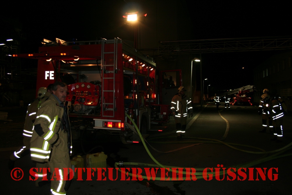 Am 5.10.2010 wurden wir um ca. 04:15 Uhr zu einem Brandmeldealarm in einem Holz verarbeitenden Betrieb in Güssing gerufen. Eine Maschine war aus unbekannter Ursache in Brand geraten. Der Großteil des Brandes konnte vor Eintreffen der Feuerwehr von der betriebseigenen Mannschaft bekämpft werden. Die Stadtfeuerwehr Güssing ermittelte die restlichen Glutnester löschte diese mit Hilfe einer Kübelspritze um den Wasserschaden so gering als möglich zu halten. Im Einsatz waren KDO, TLF, KLF, DLK und 19 Mann der Stadtfeuerwehr.