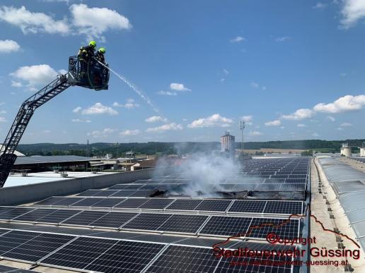 Im Endeffekt geriet auf dem Dach eine Photovoltaikanlage in Brand, wobei 6 Paneele im Vollbrand standen. Diese wurde mit Hilfe der Drehleiter von einem Atemschutztrupp abgelöscht.