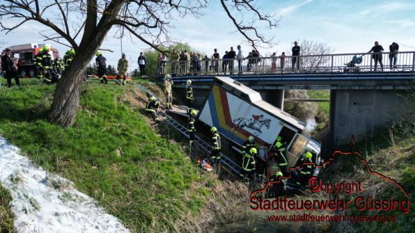 Nach dem gemeinsamen Mittagessen stand ein technischer Einsatz auf dem Programm. Ein LKW und ein PKW waren kollidiert, der LKW kam danach in einem Rinnsal zum Stehen und der PKW "wickelte“ sich um einen Baum.