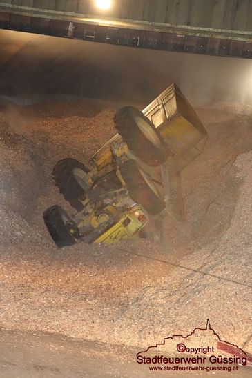 Am Montag, dem 30.12.2024, wurden wir um 17:48 Uhr zu einer Radlager-Bergung nach Urbersdorf gerufen. Ein Radlader war in einem Hackschnitzelbunker umgefallen. Die Bergung erfolgte mittels 2 Seilwinden.