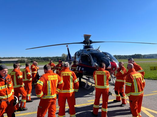 Am Übungsplan standen das richtige Einweisen mit Handzeichen und per Funk, befüllen des Bambi Buckets sowie das richtige Begleiten von Personen zum und vom Hubschrauber.