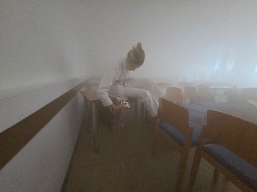 Ganz dem Thema Halloween gewidmet durften sich die Jugendlichen und BetreuerInnen heute verkleiden und spielerisch durch ein verrauchtes Labyrinth im Feuerwehrhaus durchkämpfen. Sinn der Übung war die Raumerkennung und das Vorgehen ohne Sicht.