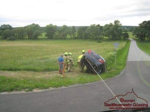 Am Mittwoch, dem 24.06.2020, wurden wir um 18:11 Uhr zu einer Fahrzeugbergung zwischen Glasing und Urbersdorf gerufen. Ein PKW war von der Straße abgekommen und in den Graben gefahren.