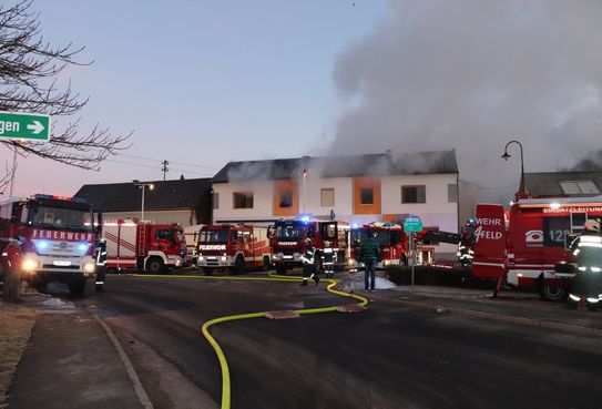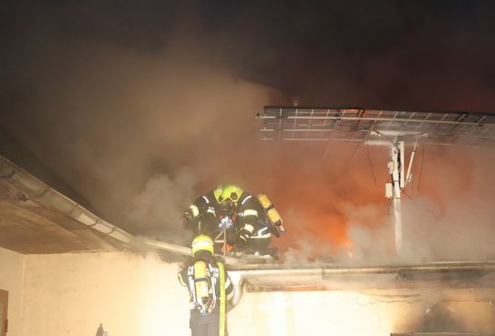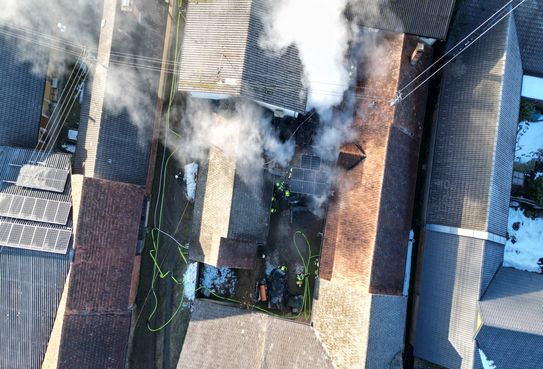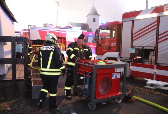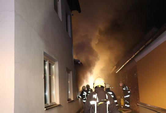 Gegen 5.00 Uhr brach das Feuer in einem Wohnhaus- bzw. Wirtschaftsgebäude aus und sorgte für einen umfangreichen Einsatz für 130 Mitglieder und 27 Fahrzeuge.
