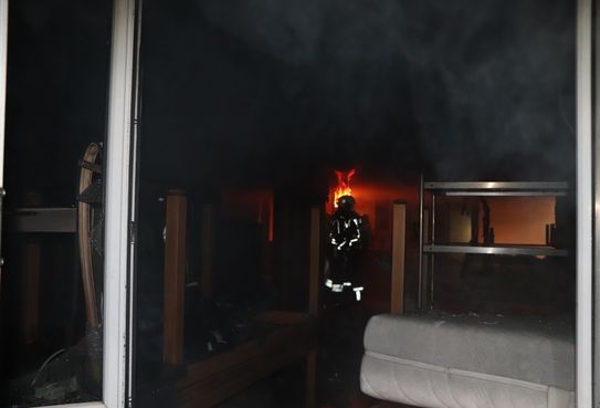 Die Brandbekämpfung erfolgt sowohl durch einen Innenangriff unter schwerem Atemschutz als auch durch einen umfassenden Außenangriff.