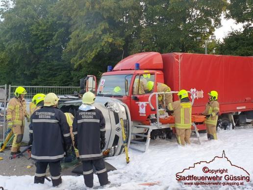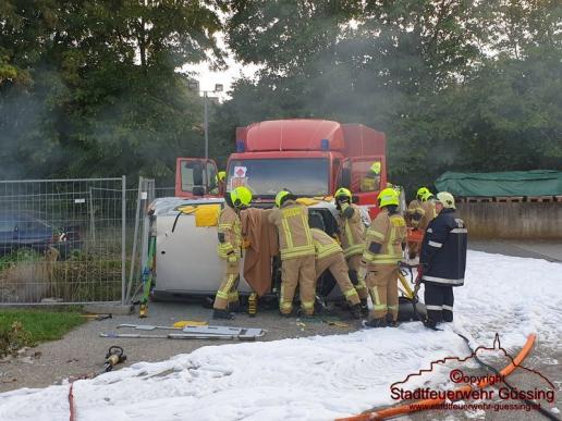 Am Freitag, dem 28.08.2020 wurde ein Verkehrsunfall zwischen PKW und LKW als Übungsszenario angenommen. Je eine Person musste aus dem PKW sowie dem LKW gerettet werden. Zusätzlich trat Diesel aus dem LKW aus, sodass ein Schaumteppich über die Einsatzstelle gelegt werden und anschließend das Leck abgedichtet werden musste.