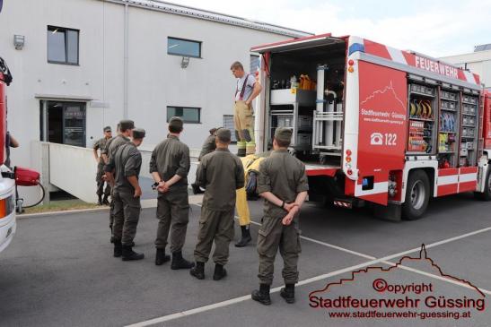 Am Freitag, dem 18.09.2020, führten wir eine Übung in der Kaserne Güssing durch. Diese wurde als Brandschutzübung für die Kaserne geplant. Übungsannahme war ein Brand im zweiten Stock eines Unterkunftsgebäudes. Zwei Personen wurden vermisst. Beide Vermisste wurden von Atemschutztrupps gesucht, gefunden und gerettet, wobei ein Verletzter über die Drehleiter transportiert wurde. Im Anschluss erfolgte noch eine kurze Vorstellung unserer Fahrzeuge. Wir danken den verantwortlichen Offizieren des Bundesheeres für die gute vorbildliche Zusammenarbeit.