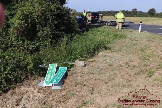 Am Dienstag, dem 14.09.2021, wurden wir um 10:37 Uhr, zu einer Fahrzeugbergung auf die B57 Höhe Kreuzung Glasing gerufen. Ein PKW war aus unbekannter Ursache von der Fahrbahn abgekommen, touchierte mehrere Straßenschilder und kam im Straßengraben zum Stehen. Die Bergung erfolgte mittels Kran und Hebekreuz unseres SRFs.