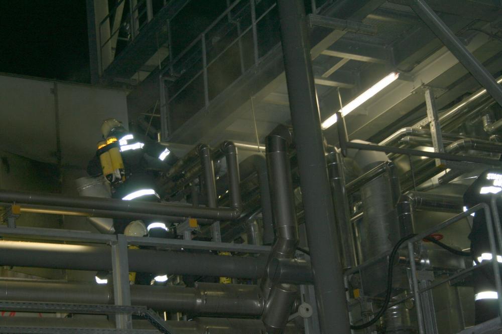 Aufgrund von Atemgiften wurde der Löscheinsatz unter schwerem Atemschutz durchgeführt. Mittels Wärmebildkamera wurde die Anlage auf versteckte Glutnester untersucht.Nach ca. 1 Std konnten wir wieder ins Feuerwehrhaus einrücken