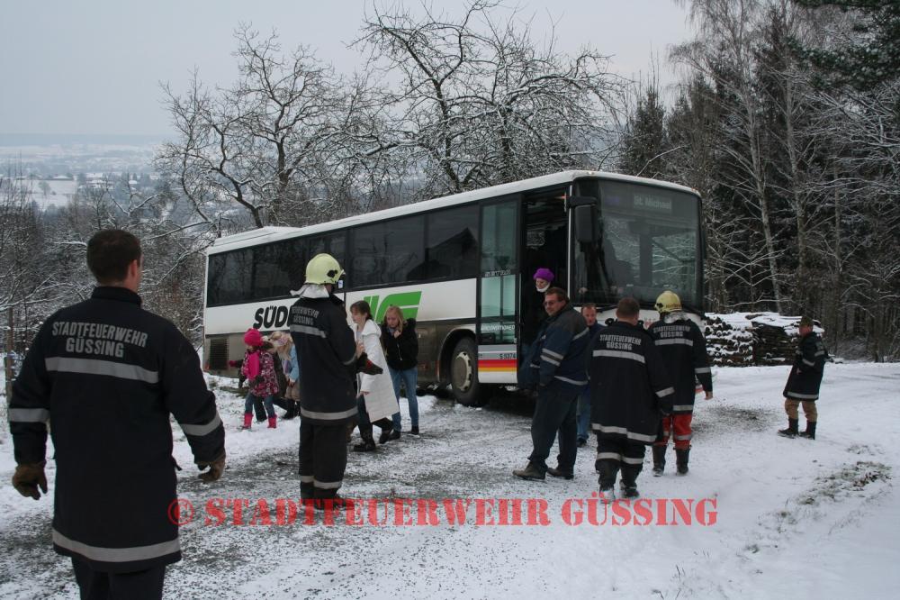 Am Dienstag, dem 15.12.2009, wurden wir um ca 07:50 Uhr zu einer Schulbus-Bergung in Rosenberg alarmiert. Der Schulbus war auf der schneeglatten Fahrbahn von der Strasse gerutscht. Die Insassen (lauter Schüler) und der Fahrer des Fahrzeuges kamen mit dem Schrecken davon. Die Bergung wurde mittels Seilwinde unseres SRFs durchgeführt. Anschließend wurde der Bus vom SRF mit einer Schleppstange bis zu einer ebenen Straße gezogen