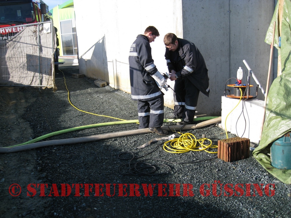 Am 28.12.2009 wurden wir zu Auspumparbeiten ins Einkaufzentrum in Güssing gerufen. Durch den enormen Temperaturanstieg, der Schneeschmelze und dem starken Regen war ein Keller voll Wasser gelaufen und musste ausgepumpt werden.