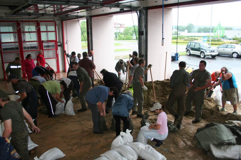 Dabei halfen auch viele freiwilige Privatpersonen mit einem Arbeitsaufwand der enorm war. Es wurden tausende Sandsäcke gefüllt und zu den gefährdeten Zonen mittels Traktoren geführt.
